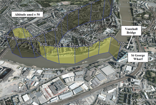 Four minutes later, abeam the London Eye at a radar-recorded altitude of 1570 feet amsl and having already asked about the possibility of diverting to the London Heliport at Battersea, the pilot had reported being able to see and identify his surface location and the adjacent River Thames as he approached the former Battersea Power Station and suggested he could “head down to (the river)” tracking southwest as a means of getting to Battersea. However, ATC instructed him to take up a hold on the river between Vauxhall and Westminster Bridges whilst they checked if the Heliport would be able to accept him. As the approved manoeuvring commenced with a right turn to head downriver again, a descent which reached approximately 570 feet amsl was begun before a climb back to approximately 770 feet amsl as Vauxhall Bridge was approached.