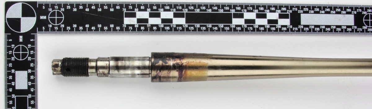 The end of the tail rotor actuator control shaft after removal from the duplex bearing containing it. [Reproduced from the Official Report]