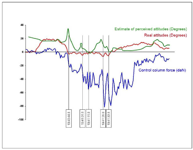 - The Captain did not react to the co-pilot’s warnings that the aircraft’s attitude did not comply with the desired flight profile. As a result, the Co-Pilot took control of the aircraft without recognizing that the aircraft was out of trim.