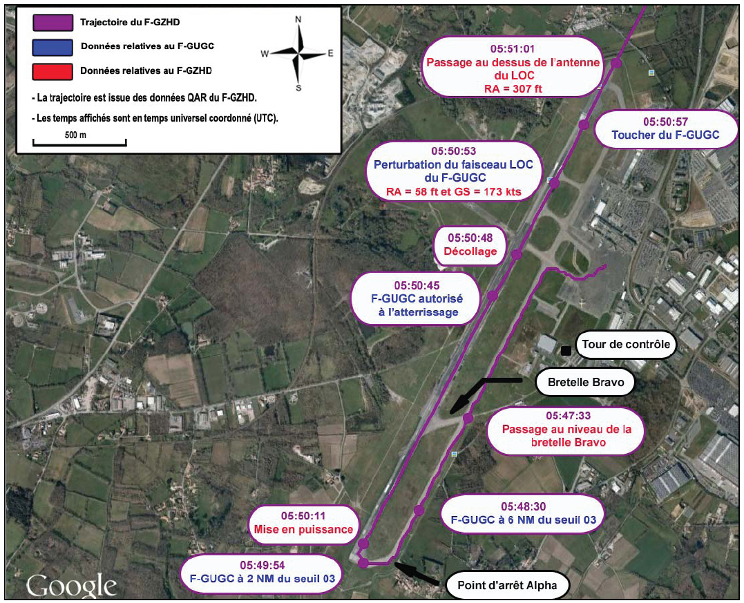 Details of the departing aircraft (F-GZHD) with corresponding annotation for the inbound aircraft (F-GUGC) - reproduced from the Official Report
