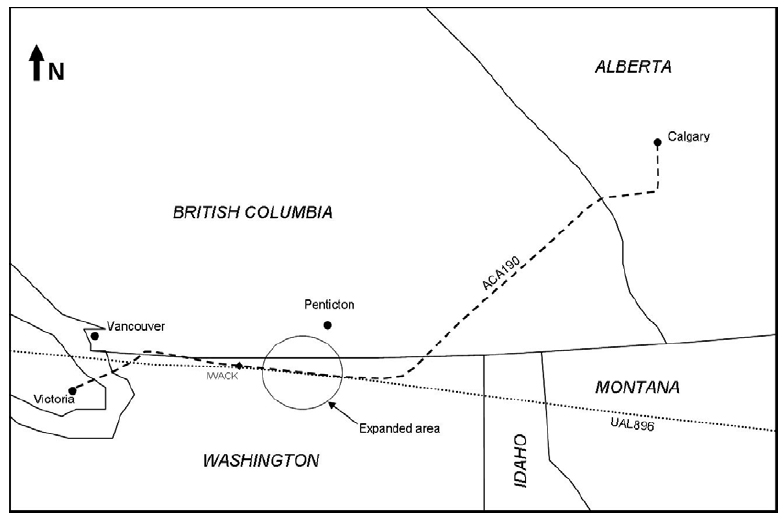 Map of Flight Paths - ACA190 (A319), UAL896 (B744)