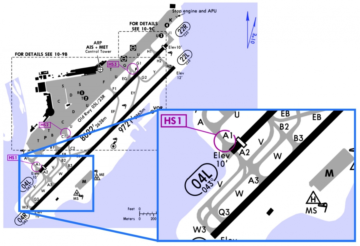 It was established that during pre flight preparations, the flight crew had decided to calculate takeoff performance for departure runway 04R from B3, the most limiting intersection they were likely to be able to use (see the illustration below). The subsequent cross check of their independent performance calculations disclosed a 1 knot discrepancy in calculated takeoff speeds which was considered acceptable and the most conservative figures were input to the FMC.