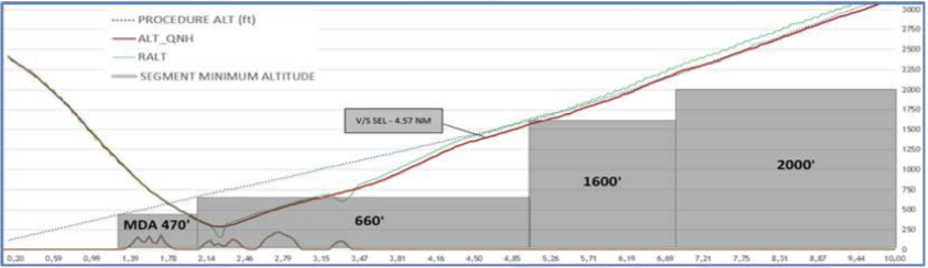 The required and actual vertical profiles showing the undulating terrain ahead of the MDA. [Reproduced from the official report]