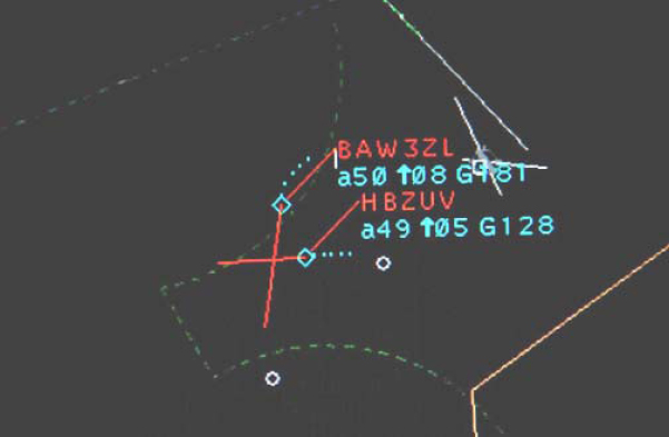 It was noted that the Short Term Conflict Alert (STCA) system installed at Zürich "because of its parameterisation, is not primarily designed for defusing conflicts which occur on arrival at and departure from airports". Nevertheless, the system did generate a visual Alert (see below) some 25 seconds prior to the potential conflict, just before the TCAS RA occurred, although since the TWR controller had been assessing the situation purely visually and had not consulted his radar display, it was not noticed. It was established that STCA at Zürich only produces audible alerts in the Departure Control Centre.