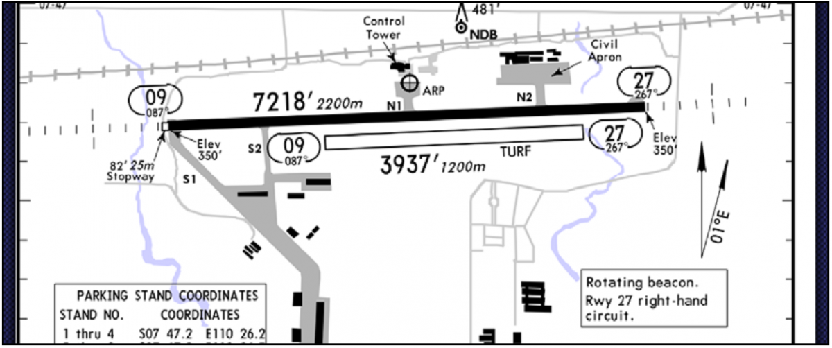 The actual taxiway layout at Yogyakarta at the time of the investigated event (reproduced from the Official Report)
