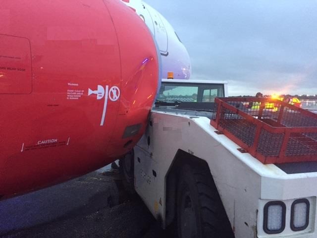 On 27 September 2017, an Airbus A320 (EC-LVQ) being operated by Iberia Express on a scheduled international passenger flight from Dublin to Madrid was hit by the tug, which was manoeuvring it off gate 318R onto apron taxiway 5 in normal day visibility from where taxiing could commence, when the tow bar shear pin failed. As a result of this, the driver lost control and the tug then collided with the aircraft right engine causing damage to both the tug and the aircraft but no ground crew injuries.