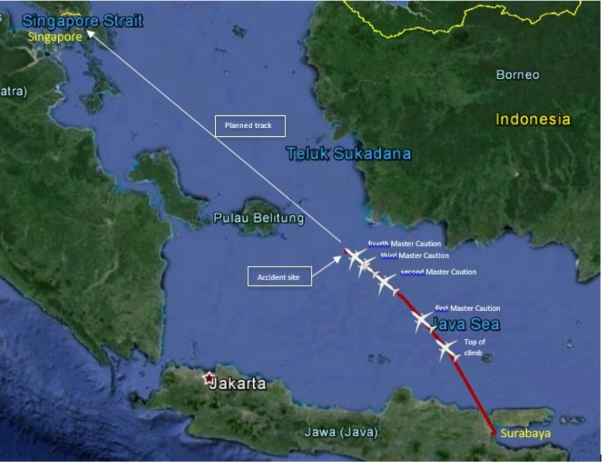 On 28 December 2014, ATC lost contact with an Airbus A320 (PK-AXC) being operated by Indonesia AirAsia on a scheduled passenger flight from Surabaya to Singapore which had just reached its cruise level of FL320 in day IMC. It was subsequently found to have crashed after a loss of control with the sea impact resulting in the destruction of the aircraft and the deaths of all 162 occupants.