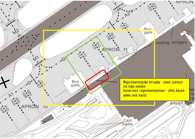 - NAV Portugal published ground manoeuvring charts which contained errors in the position of the terminal buildings at stand 114.