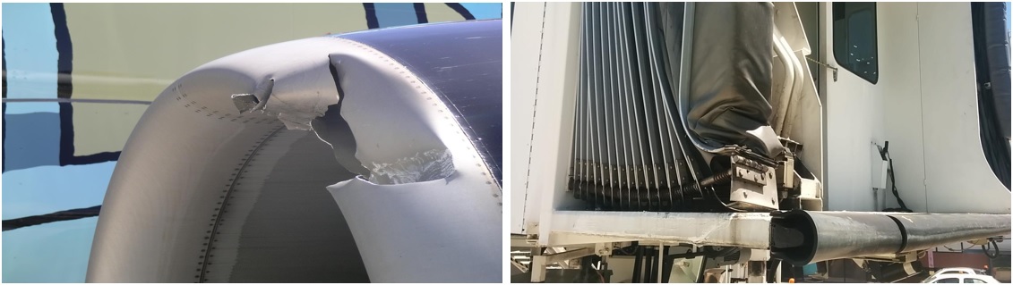The damage to the aircraft (left) and airbridge (right). [Reproduced from the Official Report]