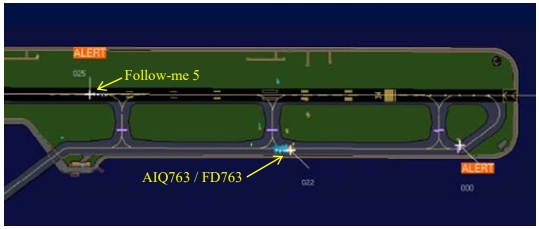 It was established that a follow-me vehicle had been cleared from the apron to the holding point for runway 34 on taxiway C3 via taxiways C1 and C2 and then subsequently cleared by the ATC Assistant after approval from the TWR Controller to enter the runway and commence an inspection of the 3,300 metre-long runway in use from that position. Ten minutes after issuing the clearance for the vehicle to leave the apron, the departing A320, having been similarly cleared from the apron to the same holding point in turn, was then cleared to take off by the TWR controller. At this time, the inspection vehicle was passing abeam the Fire Station (see its location on the illustration below).