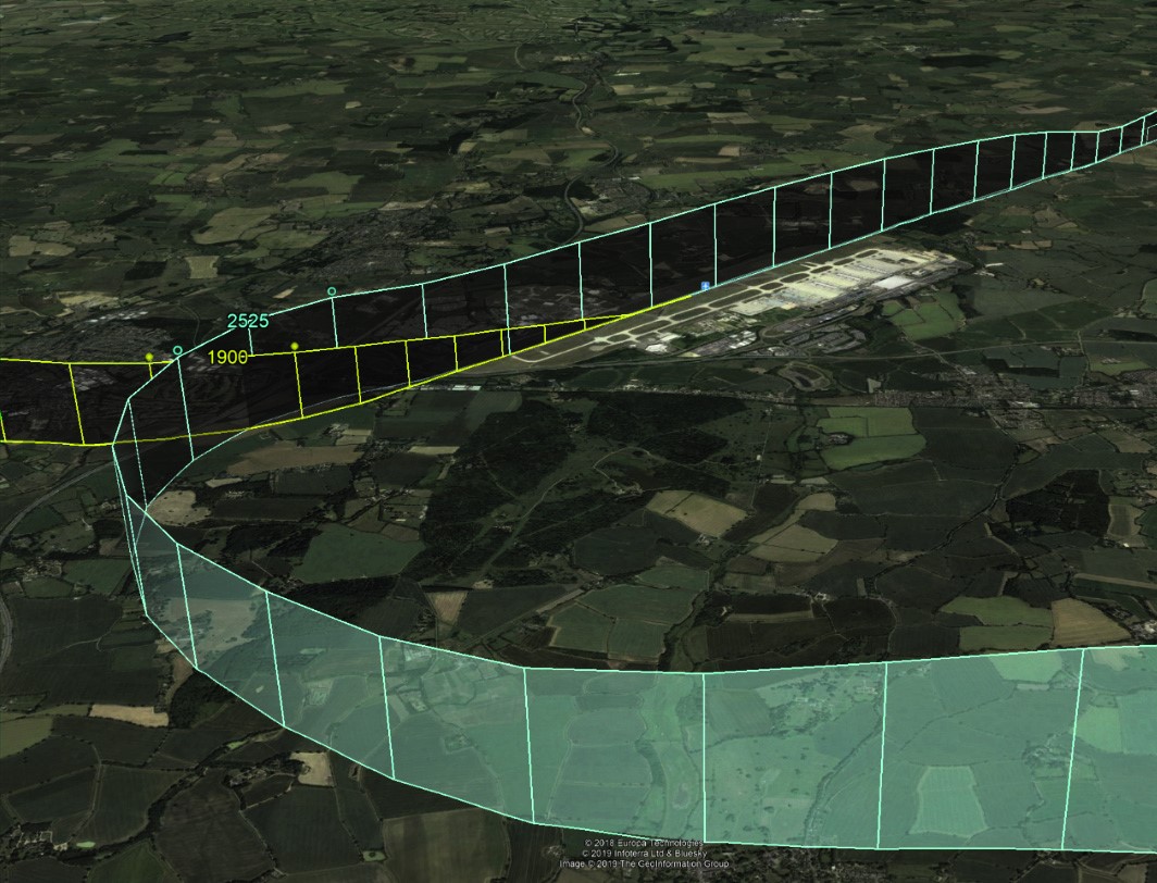 A 3D reconstruction of the flight paths of the A320 (blue) and the SF34 (yellow). [Reproduced from the Official Report]