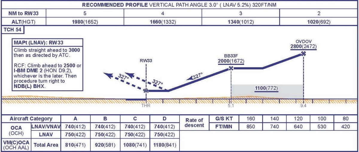The vertical profile of the runway 33 RNAV approach at Birmingham Airport taken from the UK AIP. [Reproduced from the Official Report]