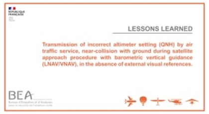 - The DSAC (the French Civil Aviation Safety Directorate) published a Safety Leaflet on the risks of incorrect altimeter settings during BaroVNAV and non precision approaches.
