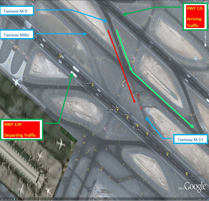 The diagram below shows the layout of the runway sections and taxiways involved.