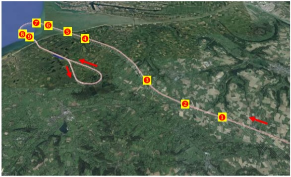The flight path of the aircraft derived from QAR data with positions referenced in the above text by a number sequence. [Reproduced from the Official Report]