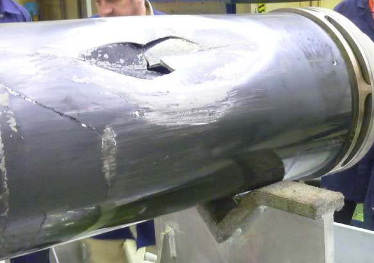The damaged right main landing gear damper fixed piston (reproduced from the Official Report)