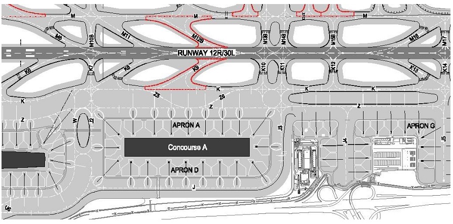 The taxi route to the gate taken after landing on runway 30L (reproduced from the Official Report)