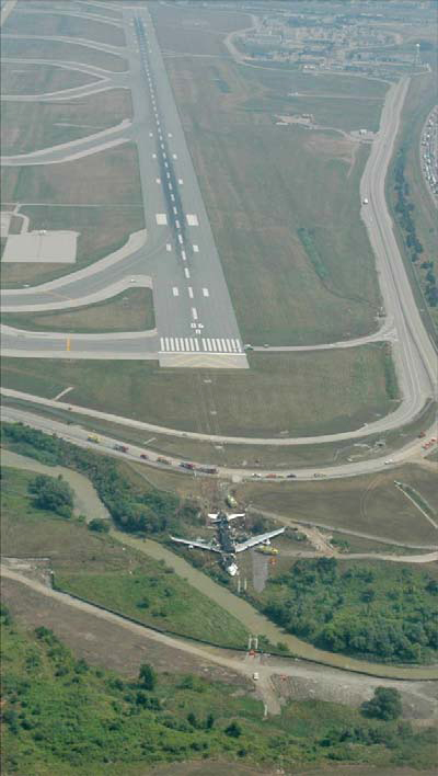 A340-300 accident at CYYZ, 2005. The picture of the accident site in relation to the runway is taken from the official TSB report of the investigation which followed.