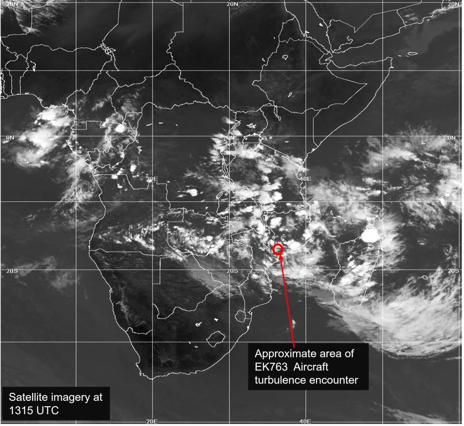 A satellite image of ITZ activity affecting the flight path at the time of the turbulence. [Reproduced from the Official Report]
