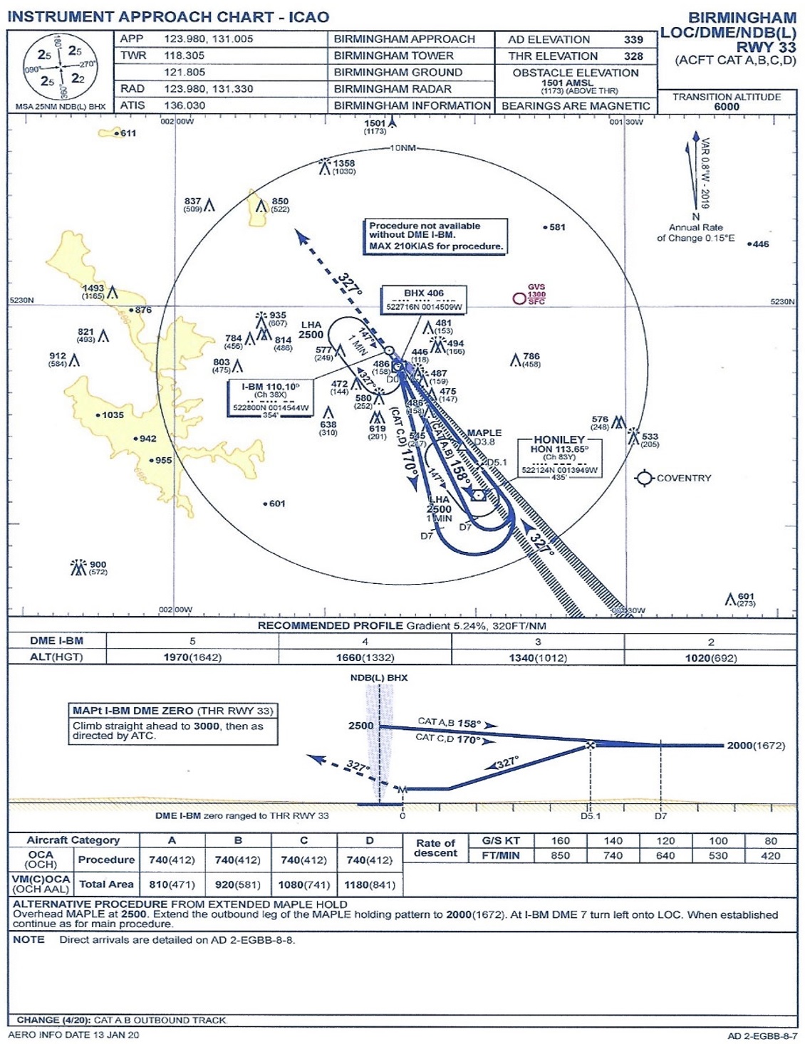 The UK AIP LOC/DME approach procedure chart for runway 33 at Birmingham. [Reproduced from the Official Report]