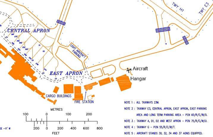 The parking position of the aircraft showing the adjacent hangar. Reproduced from the Official Report.