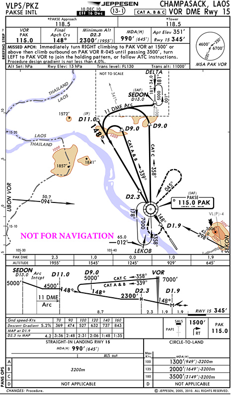 The summary English translation published by the Lao Government did not include a copy of the instrument approach chart used by the crew but this is reproduced below. Note that the chart error referred to above is evident. The summary translation available also does not state which pilot was acting as PF or include the relevant Meteorological Terminal Air Report (METAR) and TAF information available to the crew and does not elaborate on the 'series of EGPWS warnings" which occurred or discuss the extent to which the AP was in use.