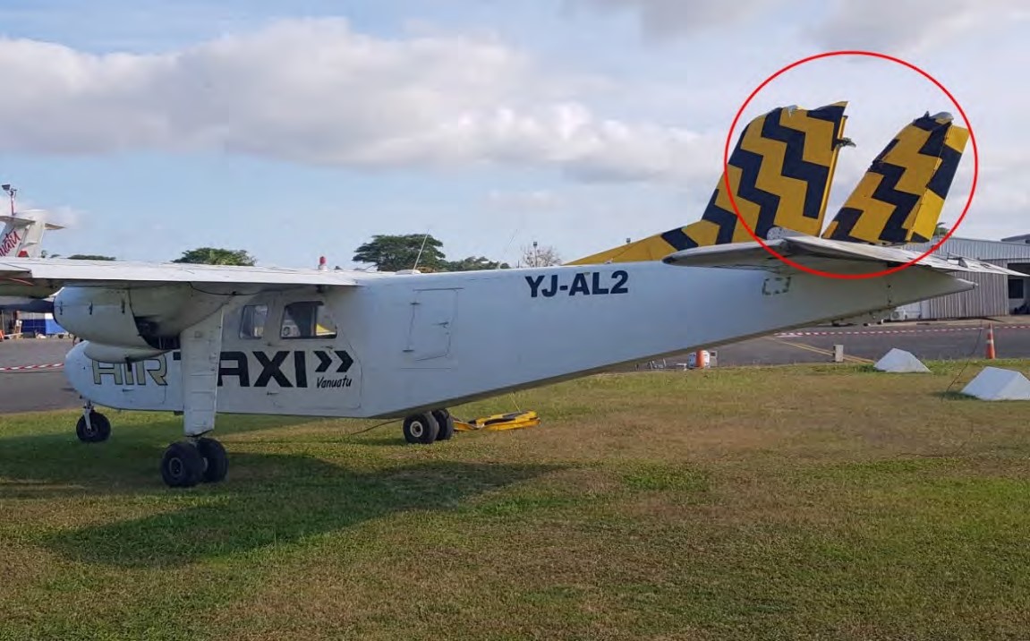 Damage to the other parked BN2 aircraft. [Reproduced from the Official Report]