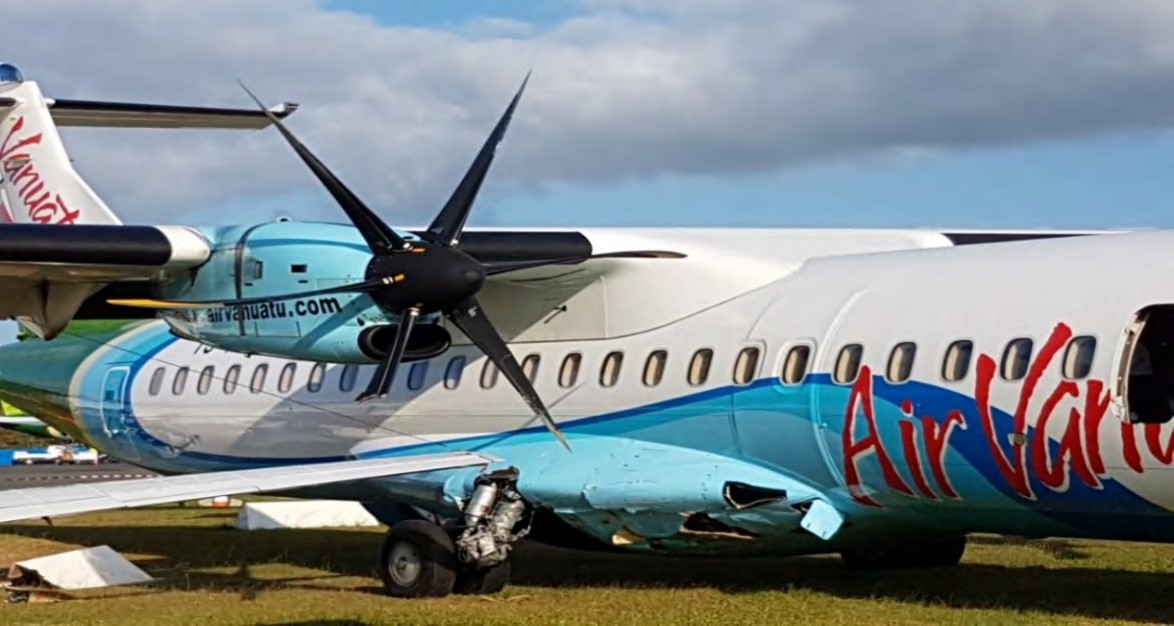 On 28 July 2018, an ATR72-500 (YJ-AV71) being operated by Air Vanuatu on a domestic passenger flight from Tanna to Port Vila. during which type conversion line training for the First Officer was being performed, suffered a sudden failure of the right engine that reportedly led to significant smoke appearing in the passenger cabin. A MAYDAY was declared on that account but an apparently unrelated landing accident subsequently occurred when the aircraft veered off the destination landing runway soon after touchdown and collided with two unoccupied parked aircraft. All three aircraft were damaged, but no occupants on the in-service aircraft were injured.