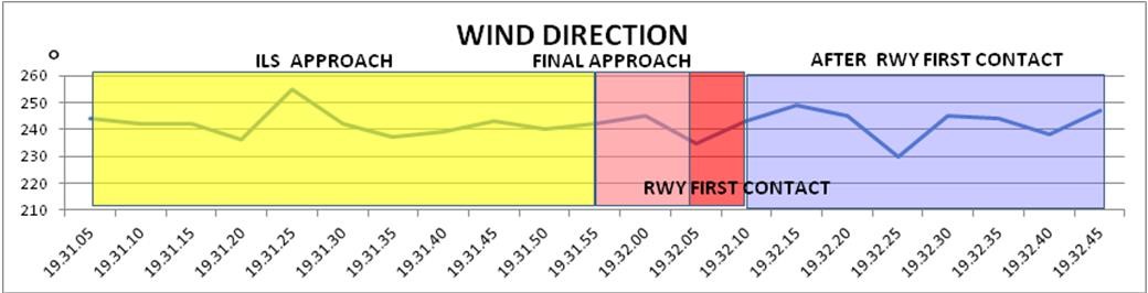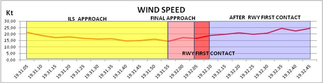 Passing 1,000 feet on what was a stabilised approach throughout, the Captain then reminded the First Officer of his intention to maintain 130KIAS and again sought her confirmation that she was content with this which followed without hesitation. Soon after this exchange, landing clearance was given accompanied by a wind check of 250°/22-37 knots. (Editors Note: Wind velocity data included in the Investigation Report confirmed that this wind check was given from the airport central reference anemometer (see ‘Discussion’ below) rather than the more appropriate one close to the runway 16L TDZ) which was 2½ nm distant and recording much lower wind speeds.] As touchdown neared, the Captain suggested that the First Officer should “follow through” on his control column inputs during the landing by resting her hands lightly on the control column.