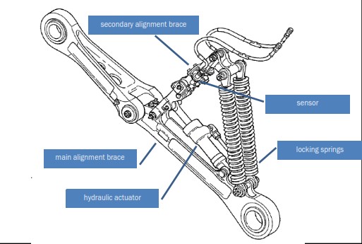 The right main gear side brace assembly in its extended position showing the locking springs. [Reproduced from the Official Report]
