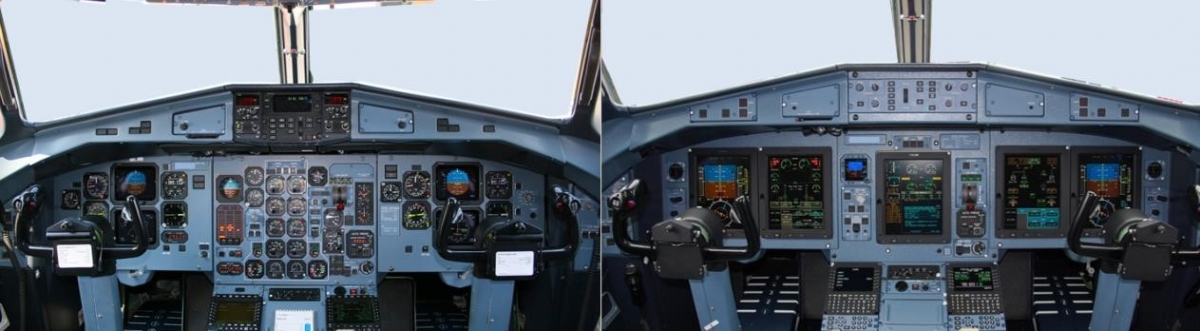 The ‘conventional’ ATR72-500 flight deck (left) & that of the EFIS ATR72-600 version (right). [Reproduced from the Official Report]