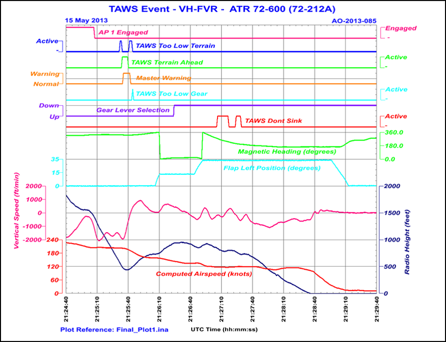 Selected FDR data showing the five TAWS Activations which occurred. Reproduced from the Official Report.