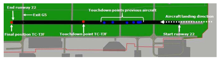 Diagram taken from the Official Report showing the touchdown position of the accident aircraft and those of previously landing aircraft