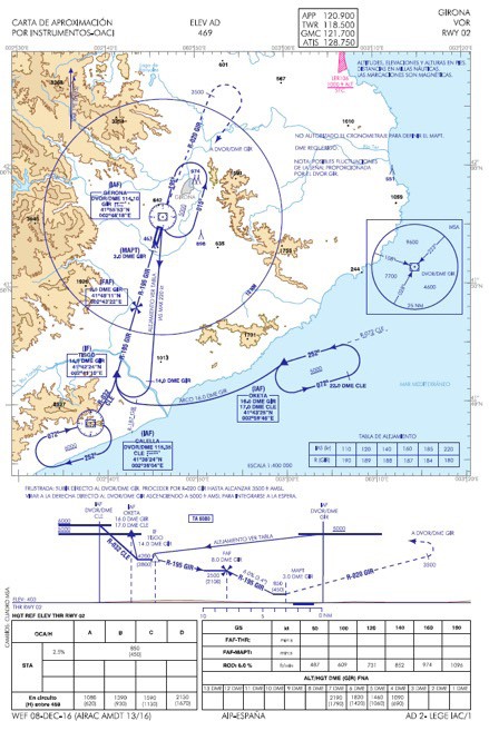 On 28 September 2016, a Boeing 737-400 (SP-ENA) being operated by Enter Air on an international non revenue positioning flight from Warsaw to Girona as ENT 1237 and a Cessna 172 (EC-JOB) being operated by Barcelona Flight School for instructional purposes out of Sabadell were both making procedural VOR/DME approaches to runway 02 at Girona under IFR but in day VMC. Both pilots had the other aircraft in sight as they neared final approach from opposite directions and when a TCAS RA was annunciated on board the 737 and it became visually obvious that continuing with their respective tracks would be hazardous, the Cessna initiated a 360° turn to clear the anticipated track of the 737 and any risk of collision was averted.