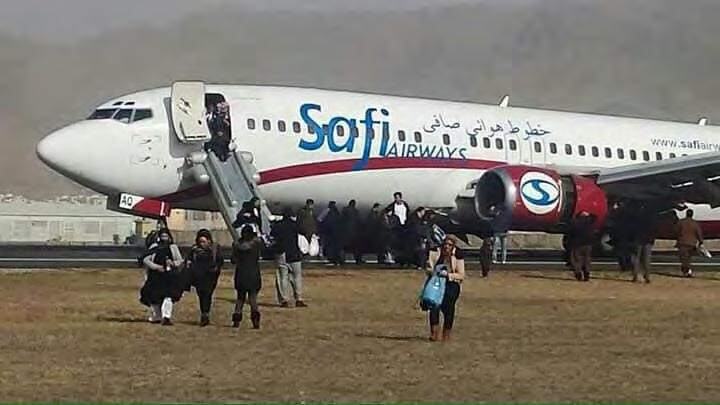 On 10 December 2016, a Boeing 737-400 (JY-JAQ) being operated by Jordan Aviation under contract to Safi Airways on their scheduled domestic passenger flight from Herat to Kabul as SFW502 had just touched down on runway 29 at destination after making an ILS approach in day VMC when the right main landing gear collapsed. The aircraft slid along the 3511 metre-long runway and stopped 326 metres from the end of it. An emergency evacuation followed as the AFS contained a fire risk at the damaged right engine which had supported the aircraft after the gear collapse. Although the aircraft sustained substantial damage, none of the 173 occupants of the aircraft were injured. The runway surface was damaged.