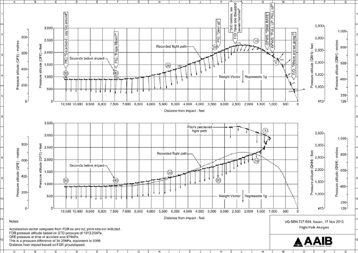 It was established that both pilots were familiar with Kazan, being based there. The flight from Moscow proceeded uneventfully and the expected destination weather was unremarkable - a cloudbase of 890 feet aal and a surface wind from 220° at 17-23 knots. En route, a change of the selected AP indicated that the Captain had taken over as PF.