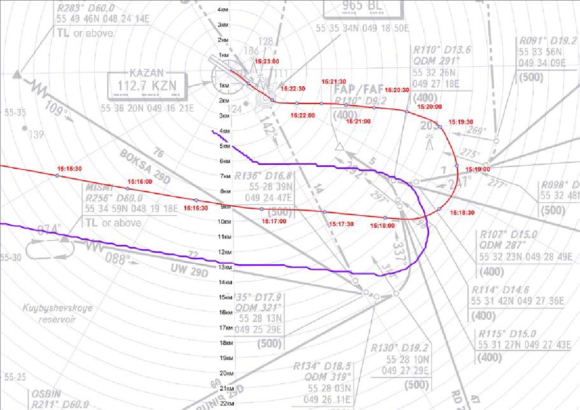 - The accident Captain had encountered similar map shifts during previous positioning for a runway 29 approach at Kazan but more timely correction to the flight path had been made. It was not determined whether these previous arrivals had been in IMC or VMC.