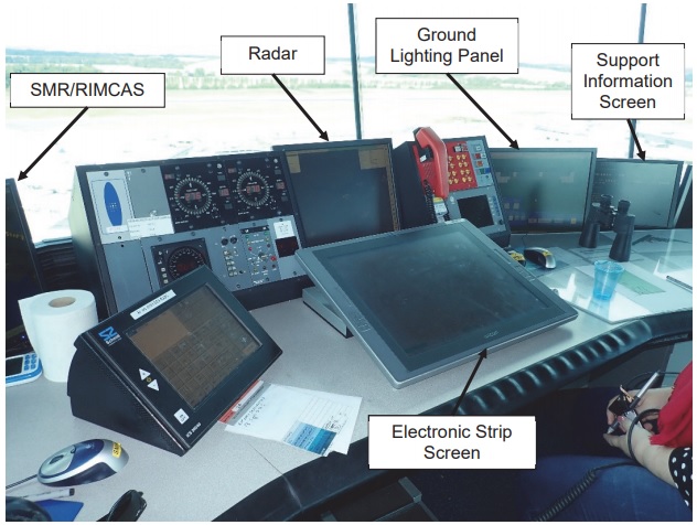It was noted that with a relatively low cloud base such as prevailed prior to and at the time of the investigated event – even though still in excess of requiring LVPs to be in force - a TWR controller gains less information by looking out of the window than in clear conditions. Consequently, both the OJTI and the trainee controller needed to rely more on information presented on the various screens. However, it was found that “the design of the screens is such that there is not a good view of them from any position other than the controller’s position” (see the illustration below). For this reason, an OJTI usually uses a higher chair for the explicit purpose of being able to see all the screen information available to the trainee and if such a chair is not available, then an OJTI “may need to be more active in changing positions to see the information they need to effectively monitor the trainee controller”. It was found that only one of these higher chairs was provided in the TWR control room and that at the time of the investigated event, both TWR and GND positions were occupied by trainees overseen by OJTIs with the only available high chair being used by the GND position OJTI.