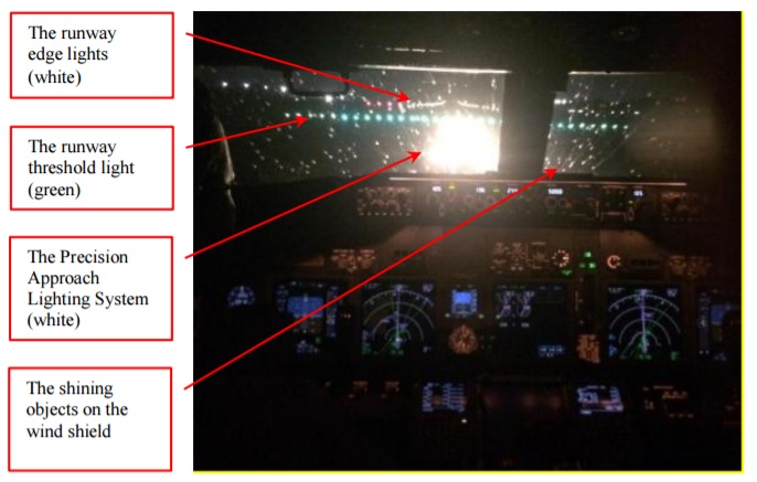 The view from the flight deck after completing a 180°turn prior to beginning a typical full length night take-off from runway 24 at Halim. [Reproduced from the Official Report]