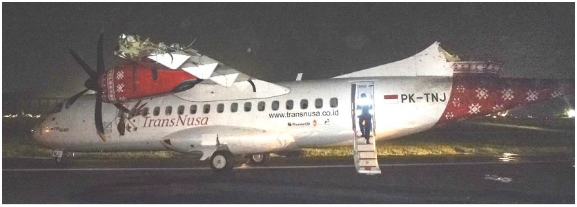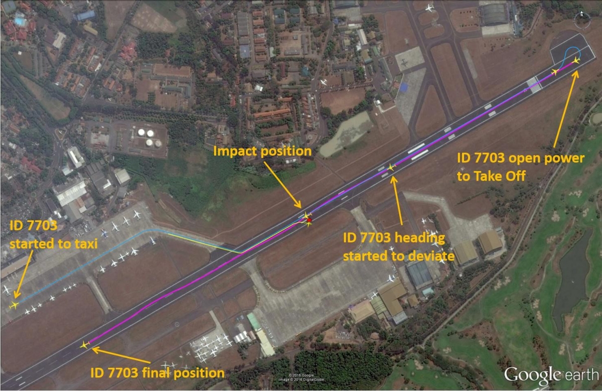 On 4 April 2016, a Boeing 737-800 (PK-LBS) being operated by Batik Air Indonesia on a scheduled domestic passenger flight from Jakarta Halim to Makassar as ID 7703 was accelerating for take-off on runway 24 in normal visibility at night and already at high speed when the crew realised that there was an obstruction ahead. Despite deviating to the right away from the centreline, they were unable to completely avoid it and a collision occurred. Fires began in the damaged left wings of both aircraft and an emergency evacuation of the 737 was ordered and successfully accomplished with no injuries to the 56 occupants. The two occupants of the other aircraft and the two occupants of the towing vehicle were also uninjured. The other aircraft was subsequently found to be an out of service Avions de Transport Regional ATR 42-600 (PK-TNJ) being operated by TransNusa Aviation and under tow. Both aircraft sustained significant impact damage to their structures but the RFFS arrived within 2 minutes and were able to quickly extinguish both fires, which minimised further damage.