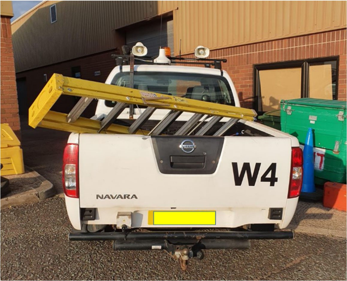 The ladder fell from WV4 during the drive along the runway, at the point where it accelerated in the touchdown zone after the end of the supplementary lights. The means of securing the ladder in the rear of the open back vehicle using a bungee was not suitable. The bungee was available for use within the maintenance organisation’s facility, but its provenance was not known. More suitable securing equipment was available although not readily to hand.
