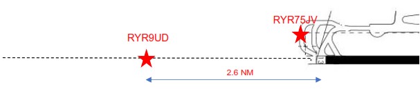 The position of the two aircraft at 19:54:15 - Minimum on-runway separation. [Reproduced from the Official Report]