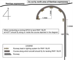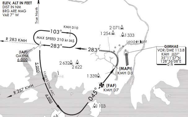 Busan is a joint military/civil use airport with TWR control provided by Air Force controllers with approval to control civil traffic issued by the Korean Transportation Safety Authority. Entry to the TERPS-determined Circling Approach Procedure to runways 18L/R was provided by use of the VOR/DME procedure illustrated below.