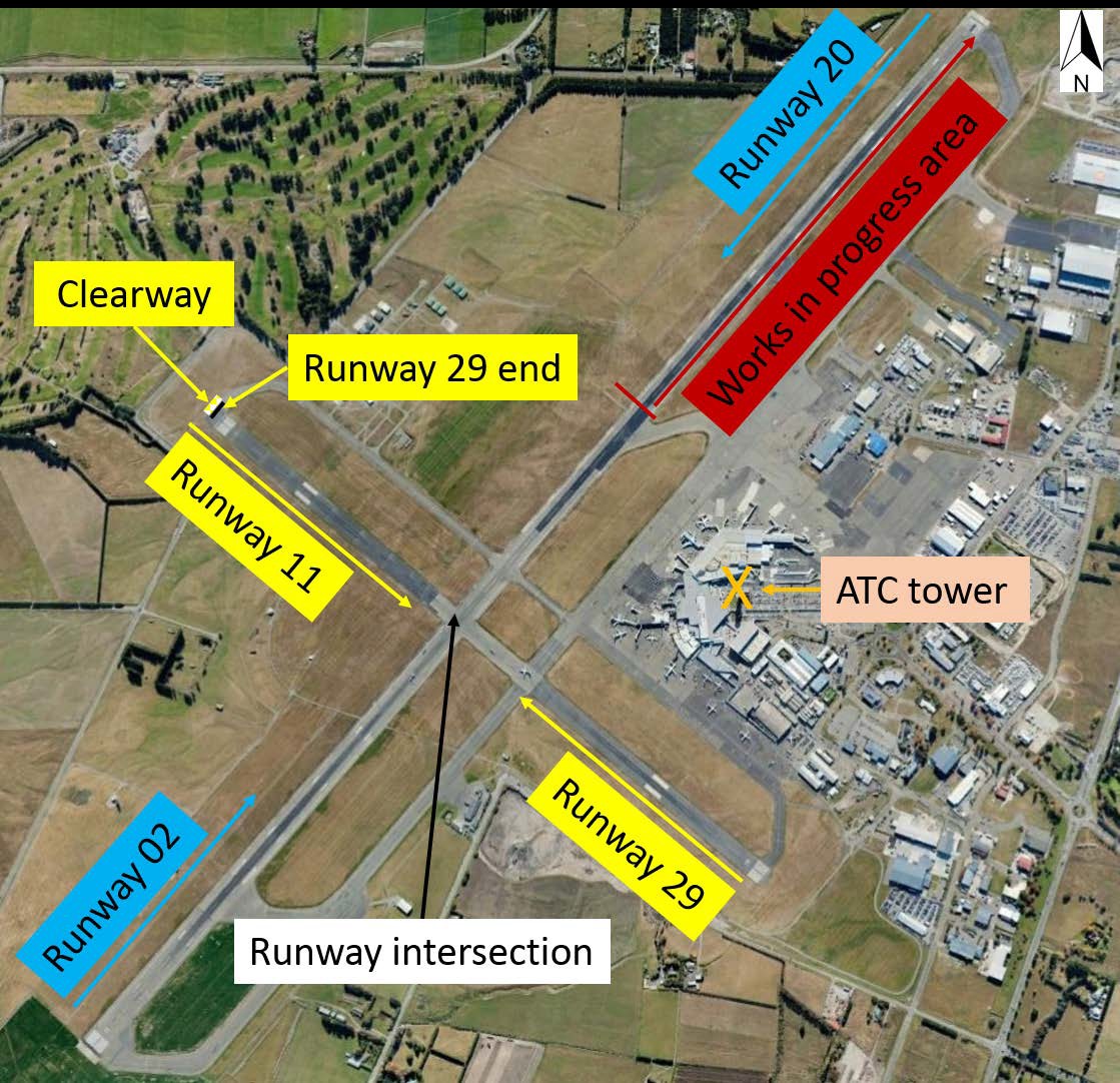An annotated aerial view of the intersecting runways at Christchurch. [Reproduced from the Official Report]