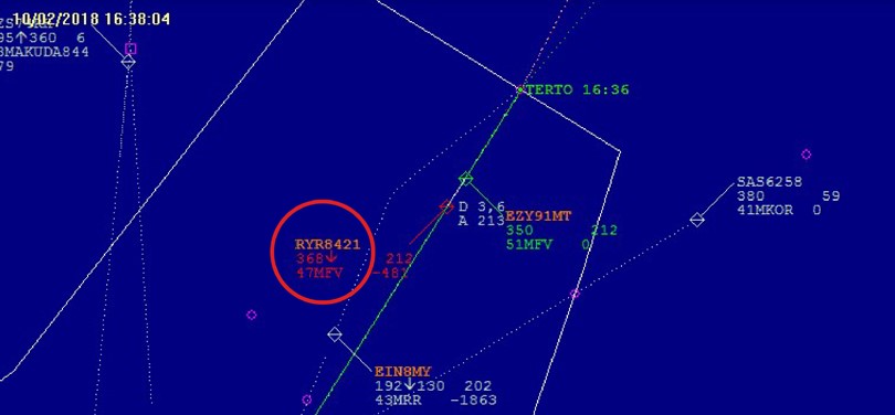 The position of the 737 (circled) at the point when the controller changed its cleared level from FL130 to FL360 - the potentially conflicting A320 is northeast of and below it. [Reproduced from the Official Report]