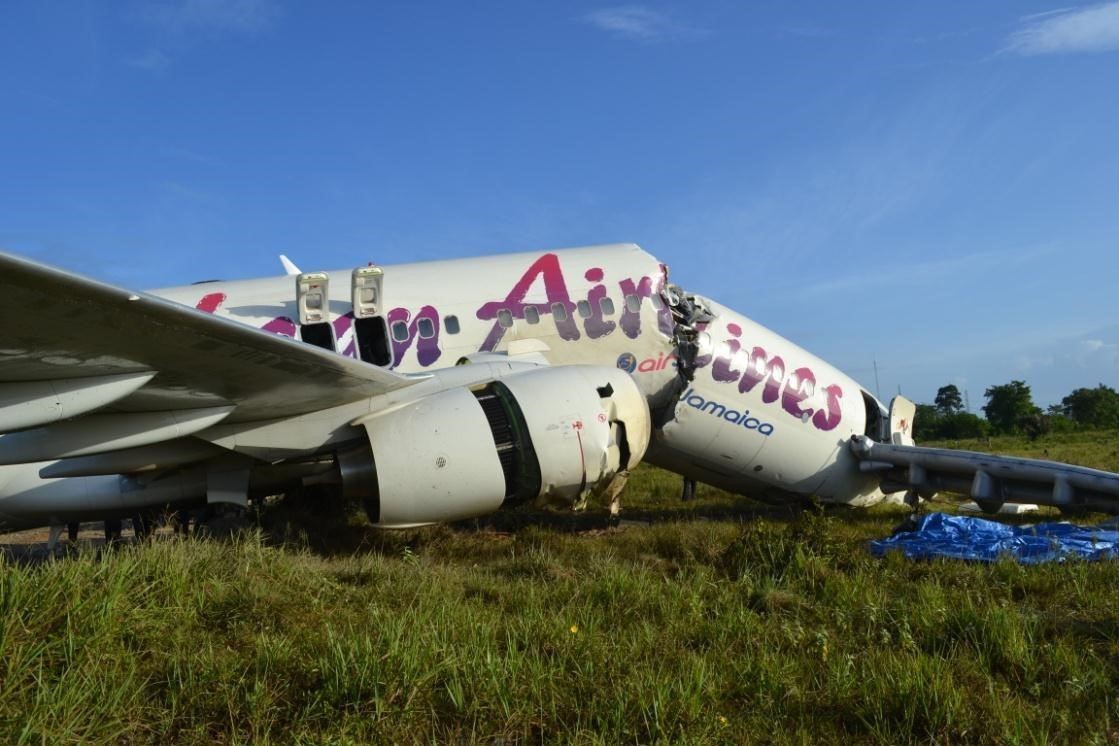 On 30 July 2011, a Boeing 737-800 (9Y-PBM) being operated by Caribbean Airlines on a scheduled international passenger flight from Port of Spain Trinidad to Georgetown as BW 523 overran the landing runway at destination after completing a night RNAV(GPS) approach in VMC. It descended down a 20 foot high earth embankment and stopped only after it had exited the airport perimeter and sustained such extensive damage that it was subsequently declared a hull loss. All 163 occupants successfully evacuated the wreckage but one serious injury and an unspecified but multiple number of minor injuries were sustained as a result of either the impact or the evacuation.