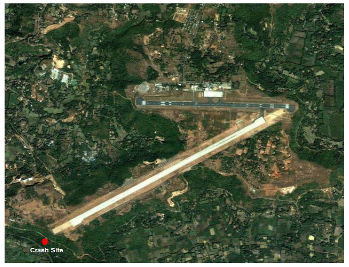 Google Earth View of Mangalore Airport with the final location of the aircraft marked (Reproduced from the Official Report)