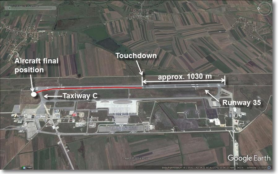 On 2 May 2016, a Boeing 737-800, (TC-JFY) being operated by THY Turkish Airlines on a scheduled international passenger flight from Istanbul to Pristina as THY97A did not touch down until almost the middle of the destination landing runway after an approach conducted in night VMC. As the end of the runway neared, the aircraft was intentionally steered off the side of the runway onto soft ground and eventually came to a stop. The left engine and both main landing gear assemblies were damaged but there were no injuries to the 157 occupants.