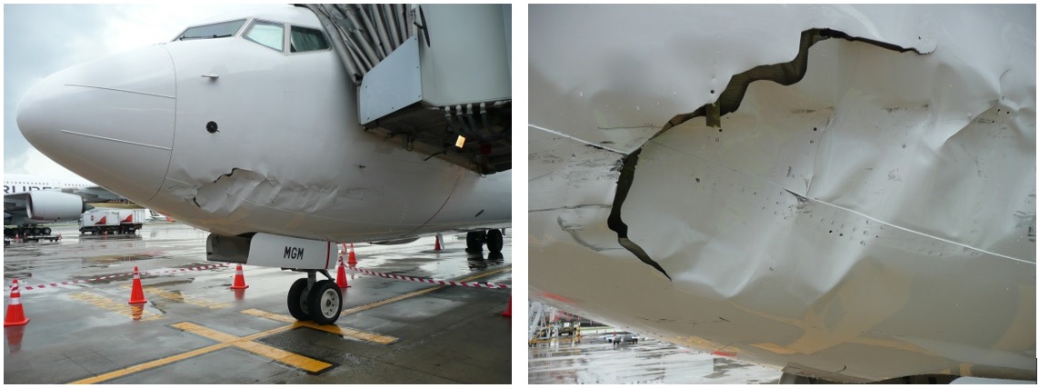 Damage to the aircraft caused by impact with the tug. [Reproduced from the Official Report]