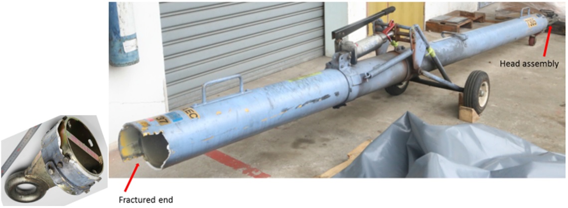 The severed tow bar (the severed end is shown in the small panel next to the main picture. [Reproduced from the Official Report]